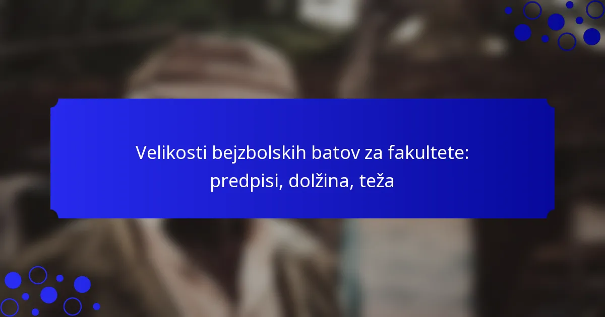 Baseball batovi za fakultete so predmet NCAA predpisov, ki zagotavljajo pošteno igro in varnost, pokrivajoč specifikacije, kot so materiali, velikosti cevi in zahteve po testiranju. Običajno dolgi od 30 do 34 palcev in težki med 30 do 34 unčami, morajo igralci izbrati bat, ki ustreza njihovi višini, moči in slogu zamaha, da izboljšajo svojo predstavo na igrišču.